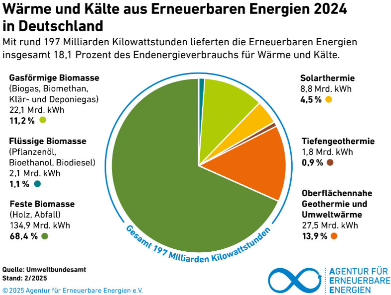 Der Anteil Erneuerbarer Energien an der Wärmeversorgung liegt bundesweit bei 18,1 Prozent. Die Wärmewende verläuft regional jedoch sehr unterschiedlich. Die Agentur für Erneuerbare Energien (AEE) analysiert in einem neuen Hintergrundpapier den Status quo und die Entwicklung der Wärmeversorgung in den Bundesländern.