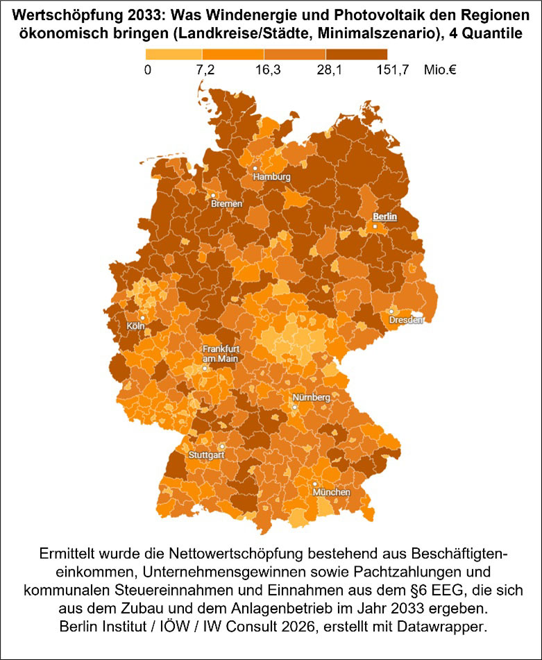Ausbau erneuerbarer Energien: Wertschöpfung in den Regionen könnte sich bis 2033 verdoppeln