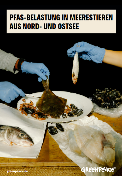 Messungen von Greenpeace an Scholle, Hering, Steinbutt und Krabben weisen Konzentrationen dieser sogenannten „Ewigkeitschemikalien“ auf, die über den Empfehlungen der Europäische Behörde für Lebensmittelsicherheit (EFSA) für eine wöchentliche Aufnahmemenge für Erwachsene liegen. Demnach kann eine Mahlzeit von 150 Gramm der untersuchten Stichproben von Hering, Scholle oder Steinbutt für einen erwachsenen Menschen ausreichen, um sich die maximal tolerierbare Wochen-Dosis an PFAS auf den Teller zu holen. Bei Kindern kann dies bereits ein Bruchteil der 150 Gramm sein. PFAS finden sich auch in den untersuchten Stichproben von Miesmuscheln, Makrele, Schellfisch und Seezunge (zur Recherche: LINK). Greenpeace-Aktive haben Ende Juni 2025 insgesamt 17 Stichproben von Meerestieren genommen. Die Proben wurden direkt von Fischkuttern, auf Fischmärkten und in Geschäften in Niendorf, Heiligenhafen, Cuxhaven, Büsum, Bremerhaven und Hamburg gekauft.