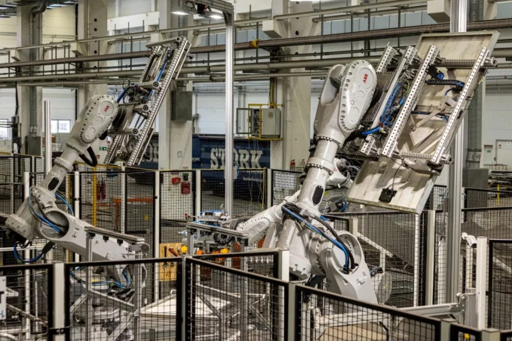 Das Unternehmen beschreibt den Ablauf auf Anfrage so: Schon an den ersten Stationen der Recyclinglinie arbeiten Roboter. Sie übernehmen die Module und entwässern sie. Dann demontieren sie Kupferkabel und Anschlussdosen.