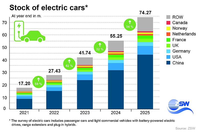 Market growth for electric vehicles has picked up speed once again in 2025: a total of 21.4 million electric vehicles were newly registered worldwide. This represents an increase of 23 per cent compared to the previous year.