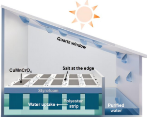 The device’s design also addresses a common challenge in solar desalination: salt buildup. It features an inverted U-shape, with the photothermal coating on the part that absorbs water. The structure includes water-wicking fiber materials and hydrophobic polyester fabric, which help draw water efficiently and allow salt ions to flow away, preventing salt accumulation on the surface.